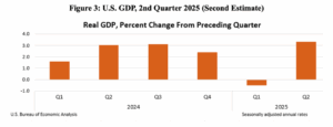 On Thursday August 28, the Bureau of Economic Analysis revised its estimate for second-quarter U.S. GDP growth to an annualized 3.3%, after an initial estimate of 3.0%. The ongoing boom is driven by investment in artificial intelligence, including new energy-intensive data processing centers. This has more than offset the negative impacts of policy uncertainty and tariffs on the parts of the economy directly affected by them (Figure 3).